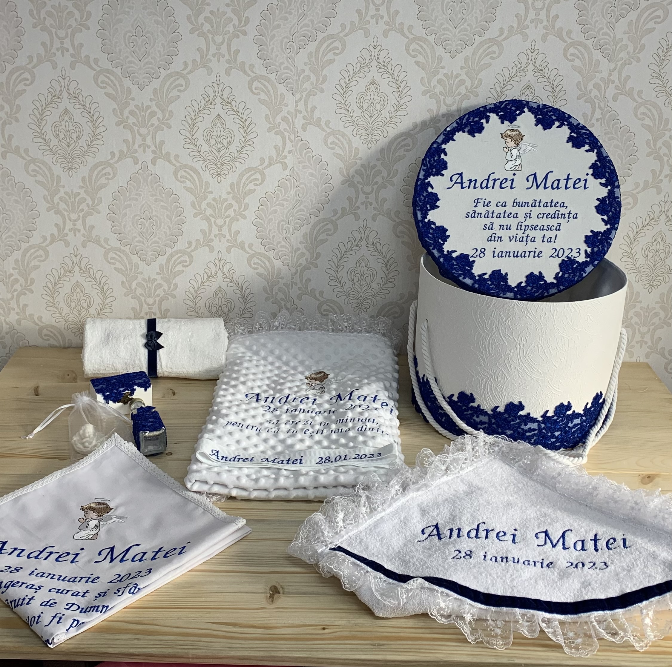 La cerere anumite piese pot fi personalizate prin broderie cu nume,dată,text sau figurină.